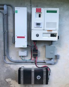 Typical entire home backed up with a generator, solar and batteries. These systems can be expanded upon using multiple charge controls, inverters and battery banks depending upon each sites specific requirements.